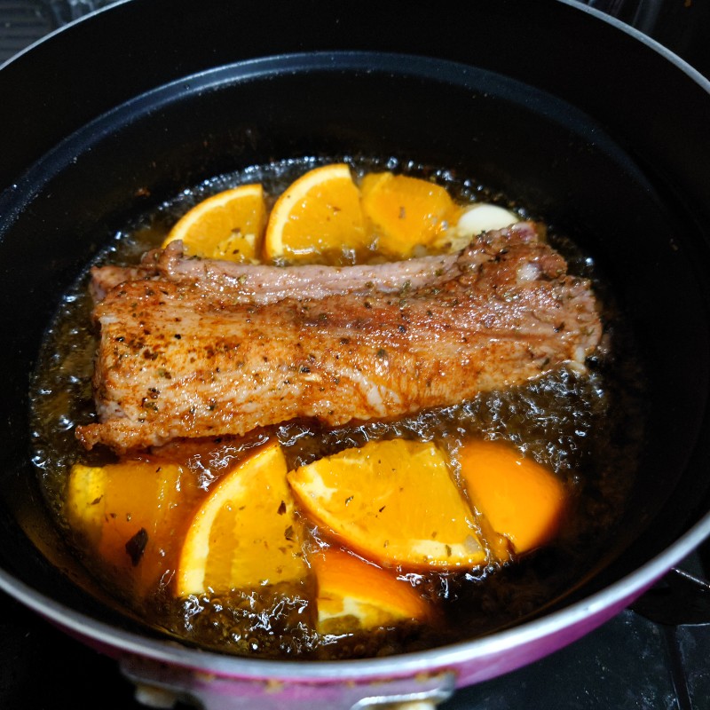 ラードとオレンジ、スパイスで煮込む場合は残ったラードを冷凍して炒め物など料理に使うとおいしかったです。