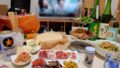 こたつテーブルは2人横並びに座れるサイズ(120×80)を選んだから、生ハムを置くスペースもある。